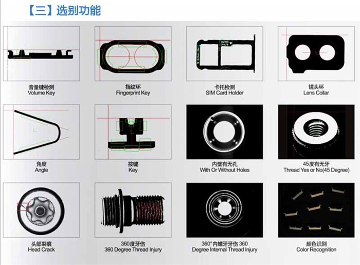 緊固件,加工件樣式千百種,大小更是。 業者在選擇自動篩選機時,包括零件的樣式以及共享性也是很大的考慮。有些篩選機只能適用于一種產品,甚至只能適用于單一尺寸,如此便無法將業者的投資發揮到效益,亦無法達到取代人力檢測,節省成本的主要目的。對有多樣產品的業者來說在成本支出上更是一大負擔。